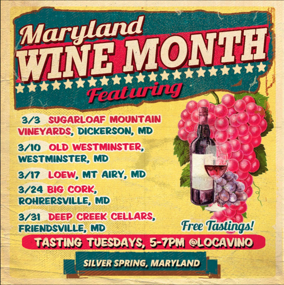 Join Rachel at Locavino in Silver Spring from 5pm-7pm for a tasting to celebrate Maryland Wine Month!