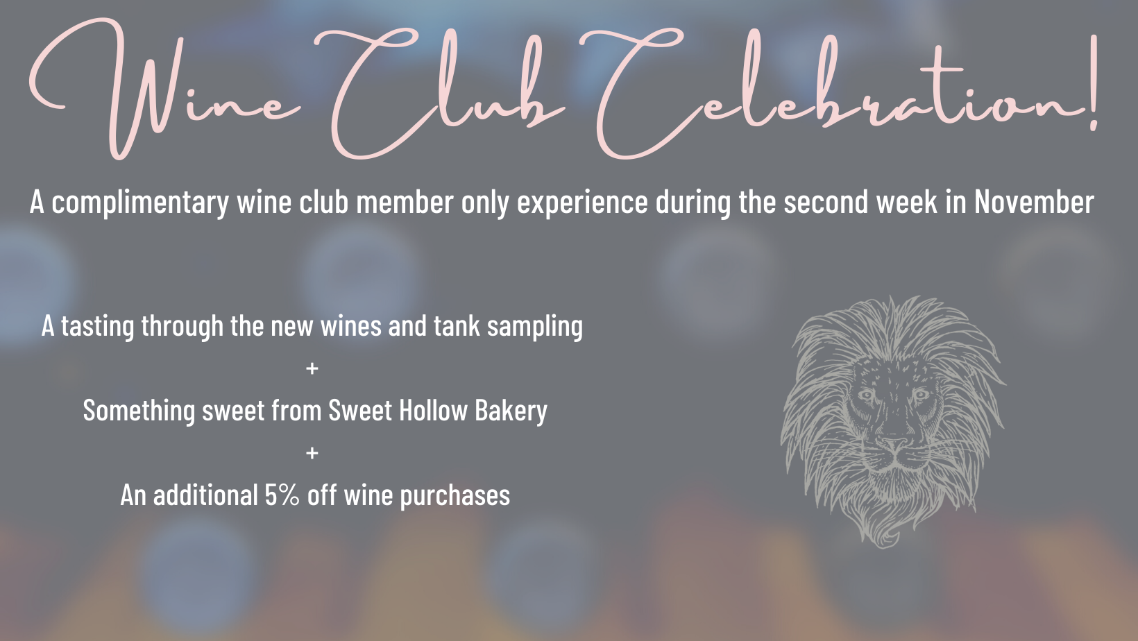 Members who pick up their allocation will be able to reserve a time slot to enjoy a complimentary glass of mead or wine, a winery tasting and tour with our 5th generation winemaker, and local treat from Sweet Hollow Bakery! Plus, an extra 5% off wine purchases.